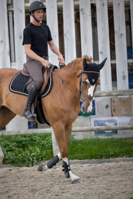 โข Adjustable, detachable, elastic leg straps / Round tail flap
