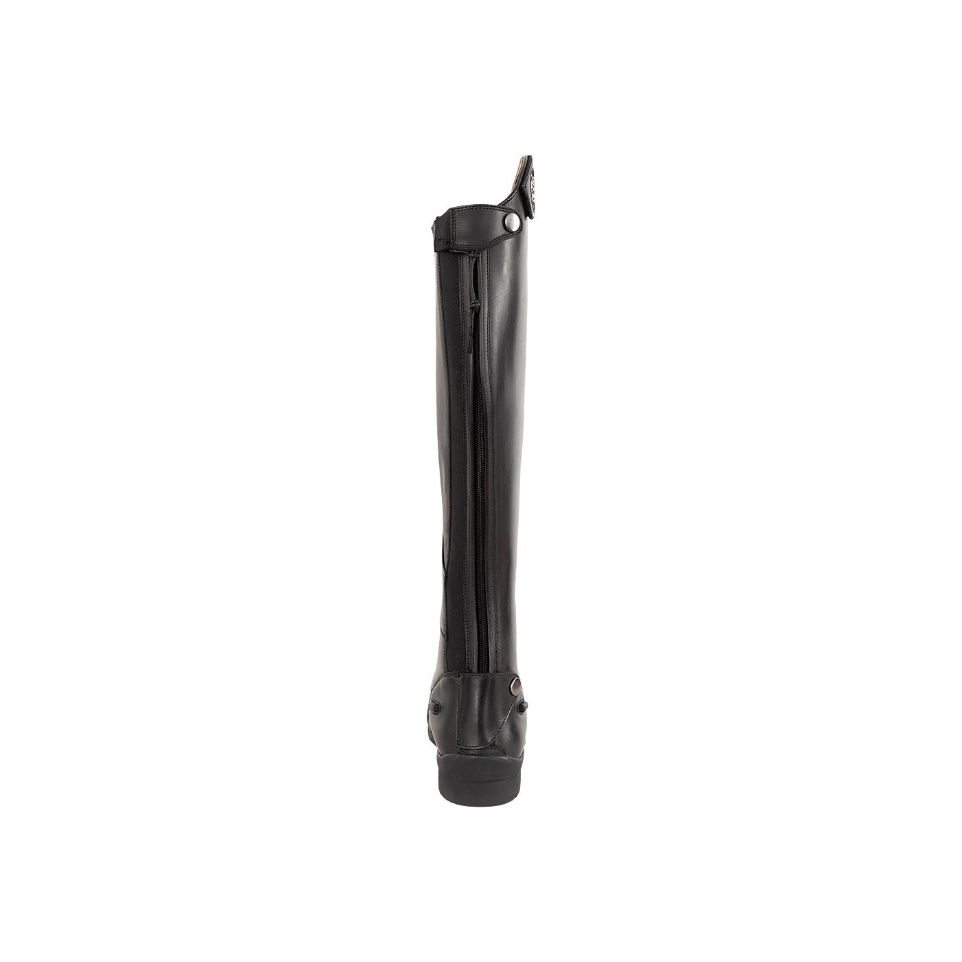 The riding boot fits nicely on the foot and leg because of the long YKK zipper with hidden elastic insert and the elastic lace on the front. The inner lining is made of non-slip wax leather and the insole has an anti-bacterial top layer for a long-lasting fresh feeling. The toe cap is finished with a subtle, patent leather trim. The rubber sole is self-cleaning, sturdy and absorbs shocks. Finally, the boot has two spur rests for spur support and the zipper is equipped with a zipper protector.