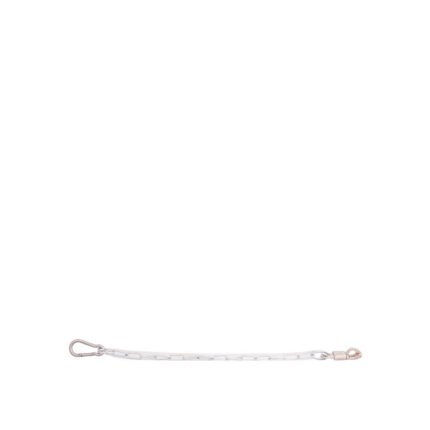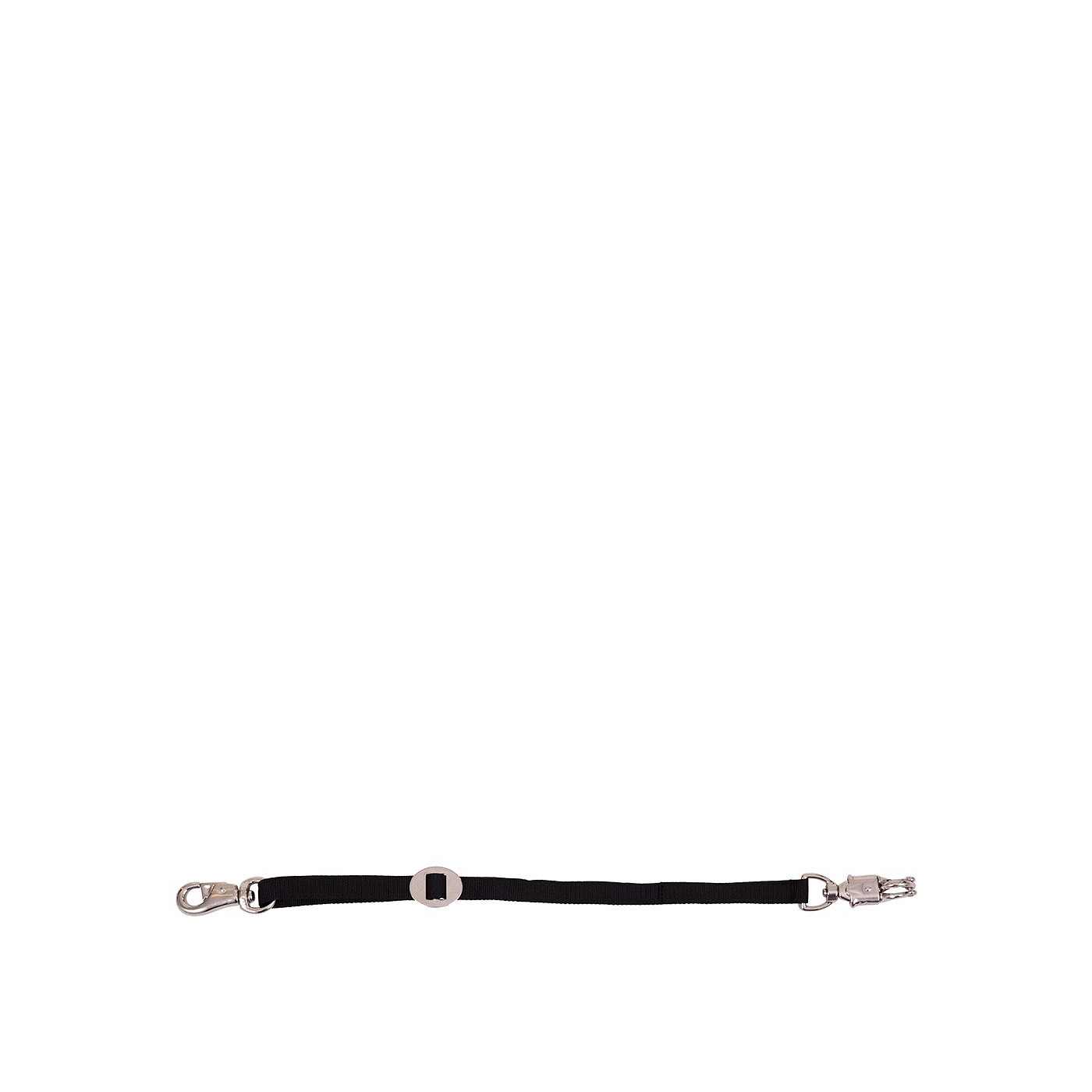 Strong nylon trailer tie, 25 mm. wide, with snap hook and panic hook.