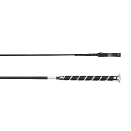 Dressage whip with a cognac leather handle. The length of the whip is measured including the whiplash.