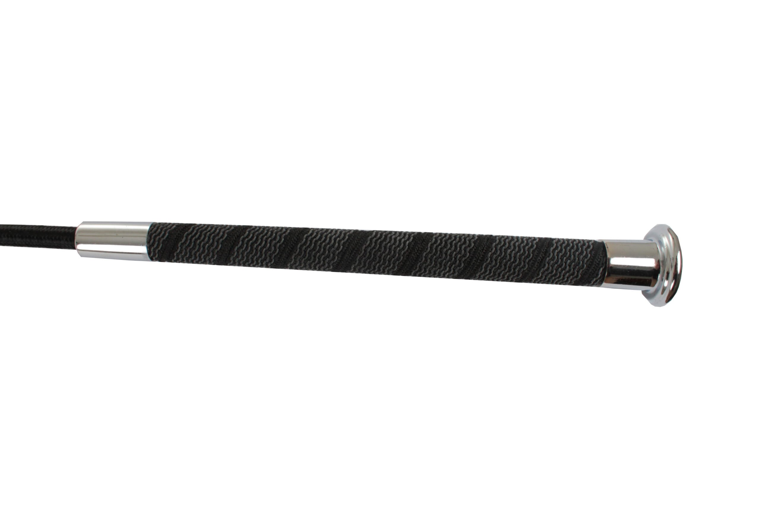 Dressage whip with a silver knob. The length of the whip is measured including the whiplash.