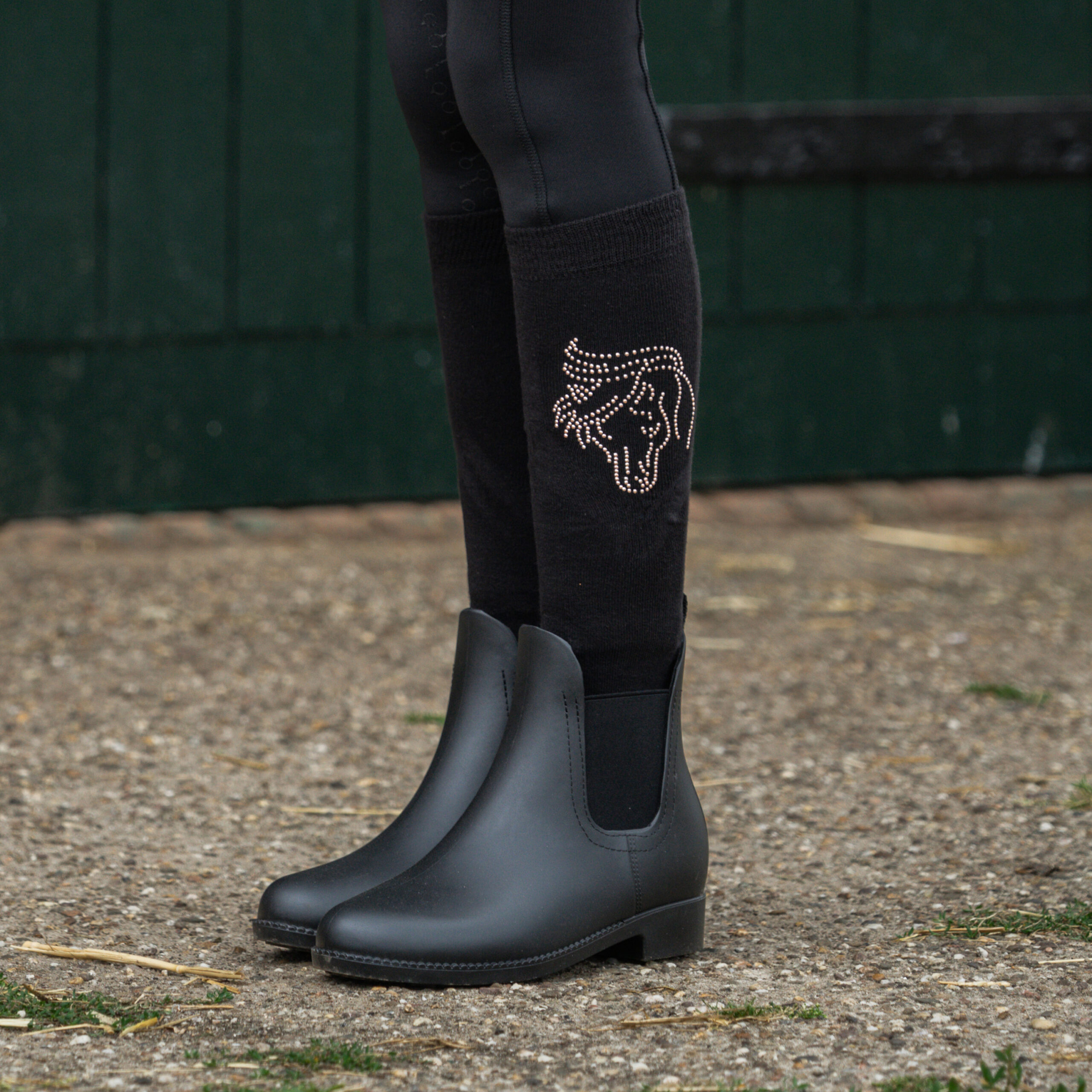 Cotton socks with a soft footbed and a horse made of crystals on the calf.