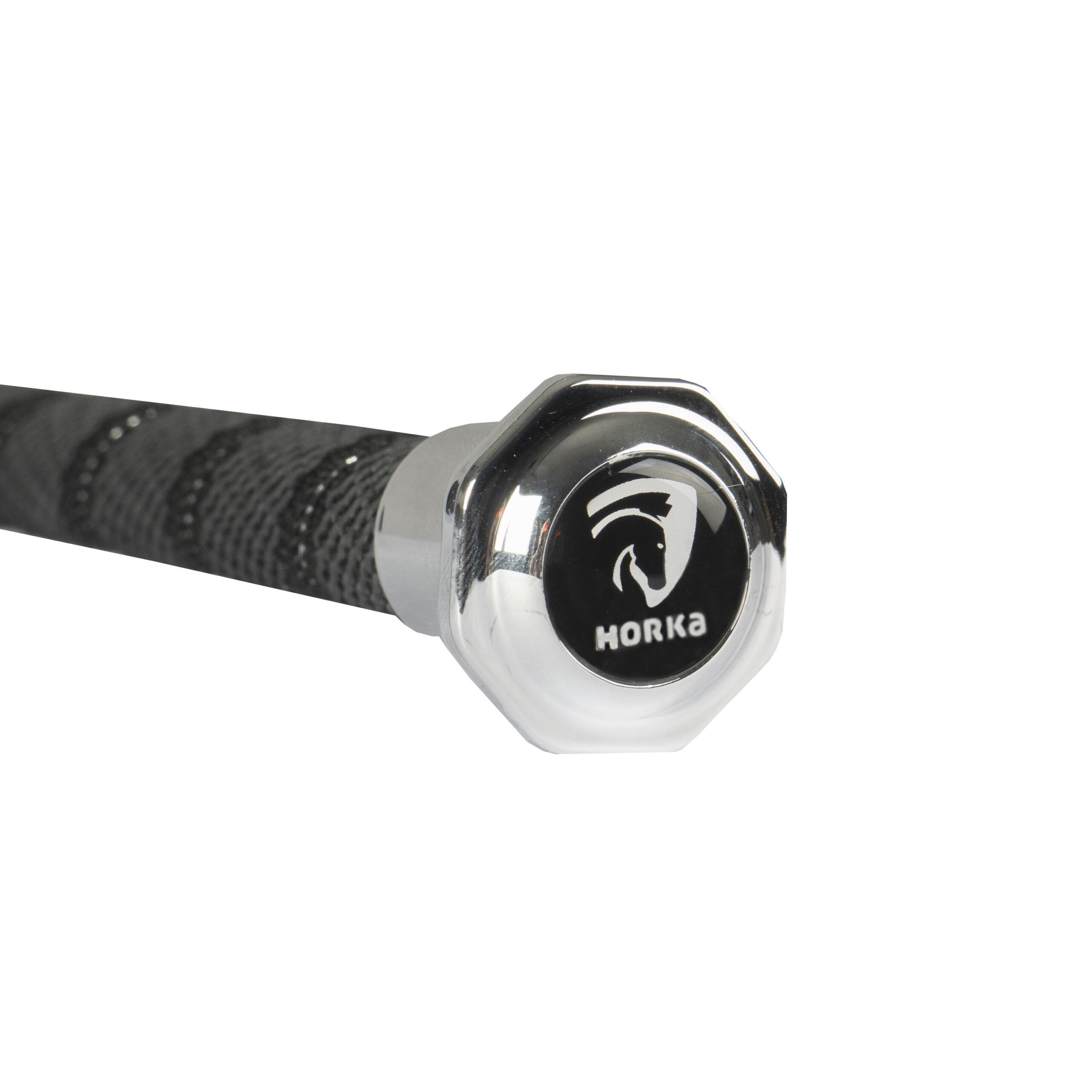 Stylish whip with a logo in the knob. The whip’s length is measured including the whip. 65 cm for jumping and 90 to 130 cm for dressage.