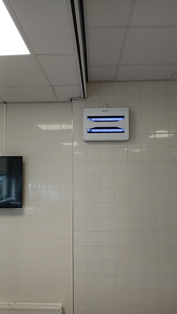 By using an adhesive plate, the fly lamp can be perfectly applied in food preparation environments. At the bottom of the fly lamp is a collection tray to catch any falling insect particles.