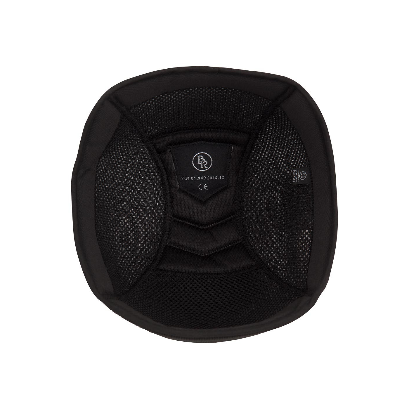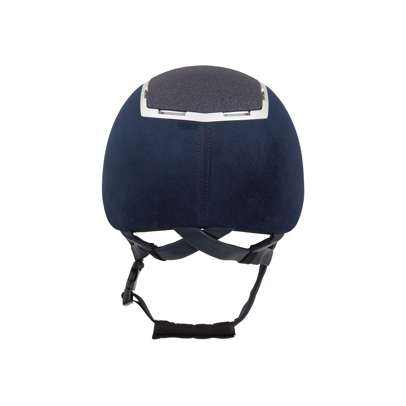 The BR riding helmet Sigma Microfiber Glitter features a lightweight shell made of strong ABS material with a microfiber coating. Its glitter top allows for a sophisticated look. The trim is fitted with twelve ventilation apertures. Combined with the inner lining, these apertures will ensure proper moisture management and excellent ventilation. The inner lining is made of Cooldry and mesh, which dries quickly and keeps your head cool. This fully detachable lining is machine washable at 40ยฐC. The helmet is equipped with an adjustable 6 point harness embellished with stylish synthetic leather. The harness is fitted with a quick release buckle and a soft chin guard made of Cooldry material. The helmet meets the EN1384-2023 safety standard and comes with three liners in different sizes to create your perfect fit.