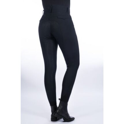 These close fit childrenโs riding breeches feature a ยพ microfiber seat. The riding breeches feature two jeans pockets and an additional coin pocket at the front and a zipper pockets with YKK zipper at the left back. The buttonhole elastic in the waist can be easily adjusted for a good fit. The waistband features belt loops. The elastic lower leg inserts ensure optimal comfort in the riding boots.
