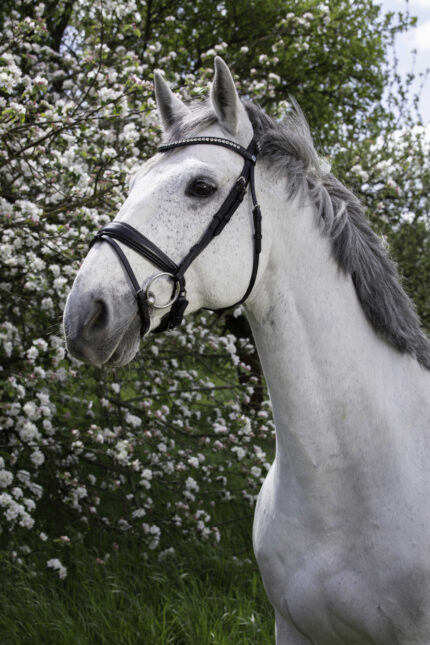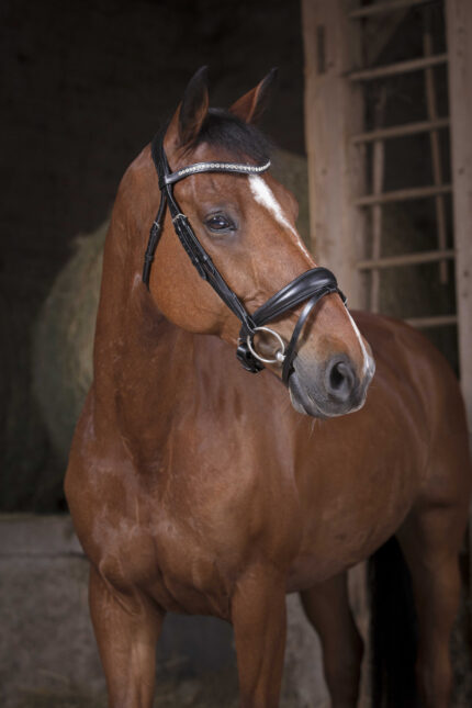– Optimal comfort: Combined noseband and padded, round, curved browband.