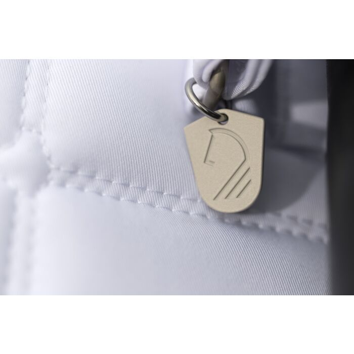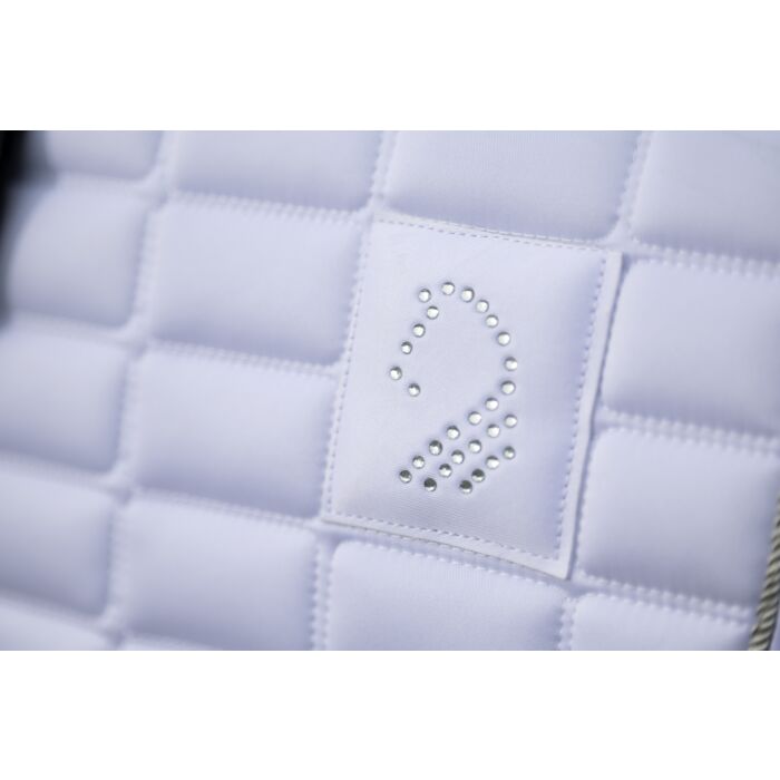 The saddle cloth Amalfi Competition by Lauria Garrelli combines functional excellence with a touch of elegance – perfect for making a grand entrance at the show. The breathable mesh underside ensures optimum moisture transport, while the non-slip silicone print guarantees a secure fit in the saddle. Removable loops allow for flexible fastening. Fine rhinestones and an elegant, silver-coloured cord on the edge give the saddle cloth an exclusive look. With its stylish design and high-quality workmanship, it is the ideal choice for discerning riders who value performance and aesthetics.