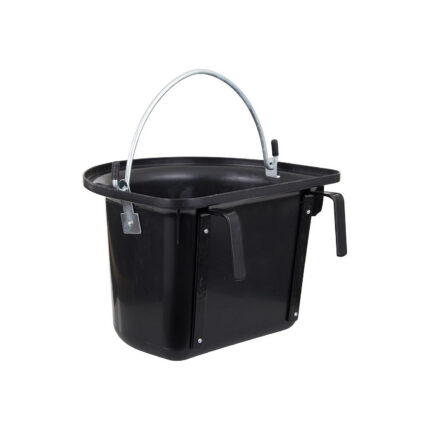 Plastic, with flat back and handle, heavy model. Volume: 18 liter.