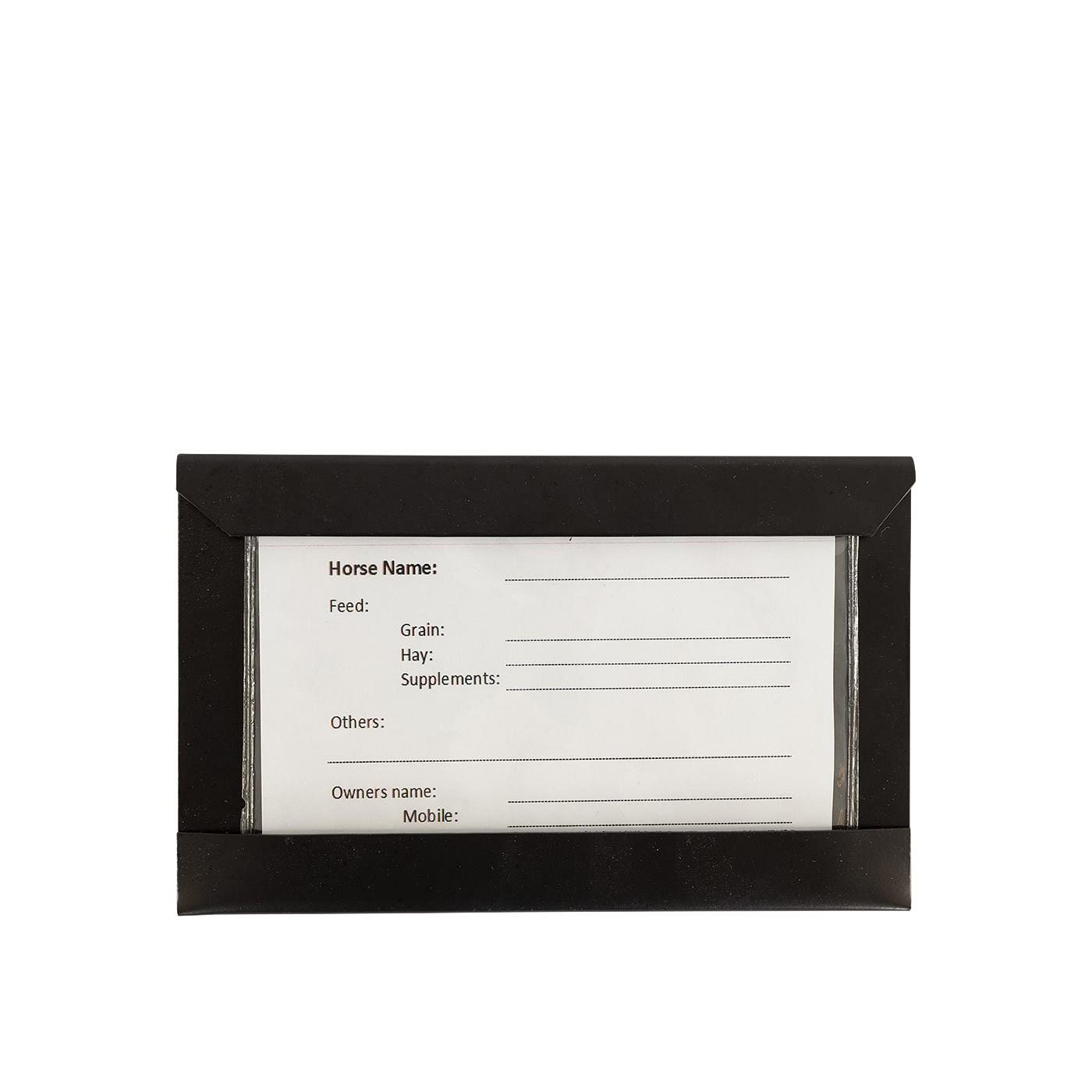 This metal stable plate with plasticised stud card is sturdy and long-lasting. Screws not included.