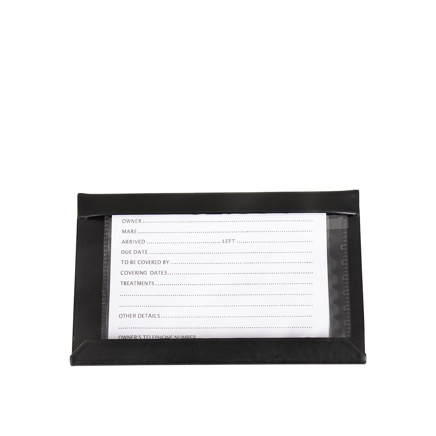 Praktiline ja vastupidav tallisilt hobuse boksi mรคrgistamiseks. Plastikkattega silt kaitseb sisu mustuse ja niiskuse eest ning vahetatav sisekaart vรตimaldab infot vajadusel kiiresti uuendada.
