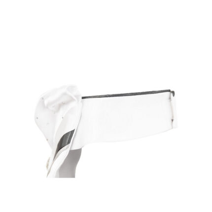Luxurious stock tie for kids of high-quality shiny satin. The middle of the stock tie has been fitted with two black stripes with imitation diamonds. The bottom of the stock tie has been decorated with a silver-coloured BR embroidery. This extremely convenient stock tie is ready tied and does not need a stock pin. Can easily be fastened around the collar of the competition shirt or competition blouse by way of the Velcro closure at the back. Material: 100% polyester satin.