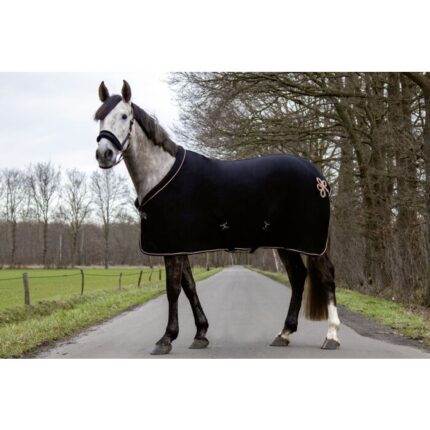 This luxurious thermal cooler is made of knitted polyester/acrylic fabric with an insulating core of polypropylene fibres. Its chest is lined with 190T polyester. The layered fabric has excellent wicking properties and keeps the horse warm and comfortable. The rug is ideal for the cold season and prevents the horse from cooling down too quickly after exercise. Perfect for travelling and competitions as well. The lightweight rug dries quickly, is very soft and provides a perfect fit thanks to its anatomic shape. The rug features adjustable, double breast straps with quick release clips; a wither protector; adjustable, detachable cross surcingles and a fillet string. Hardware made of chromium-plated zinc.