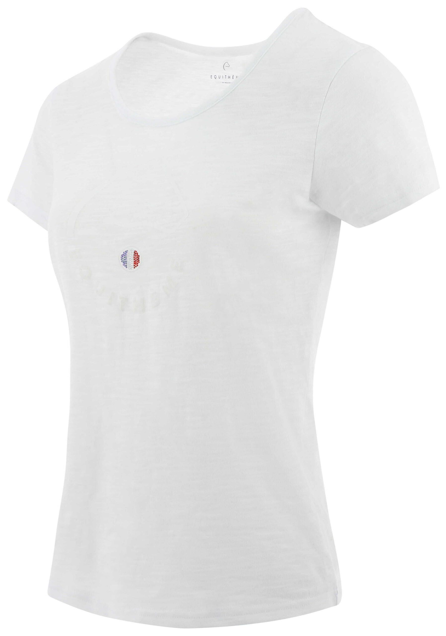 T-shirt with rhinestone country flag. – Lightweight and absorbent: To keep you cool. – Comfort: 100% cotton DETAILS: – Slim fit, wide collar. – French flag in blue, white and red rhinestones. – Logo in silicone print and velvet.