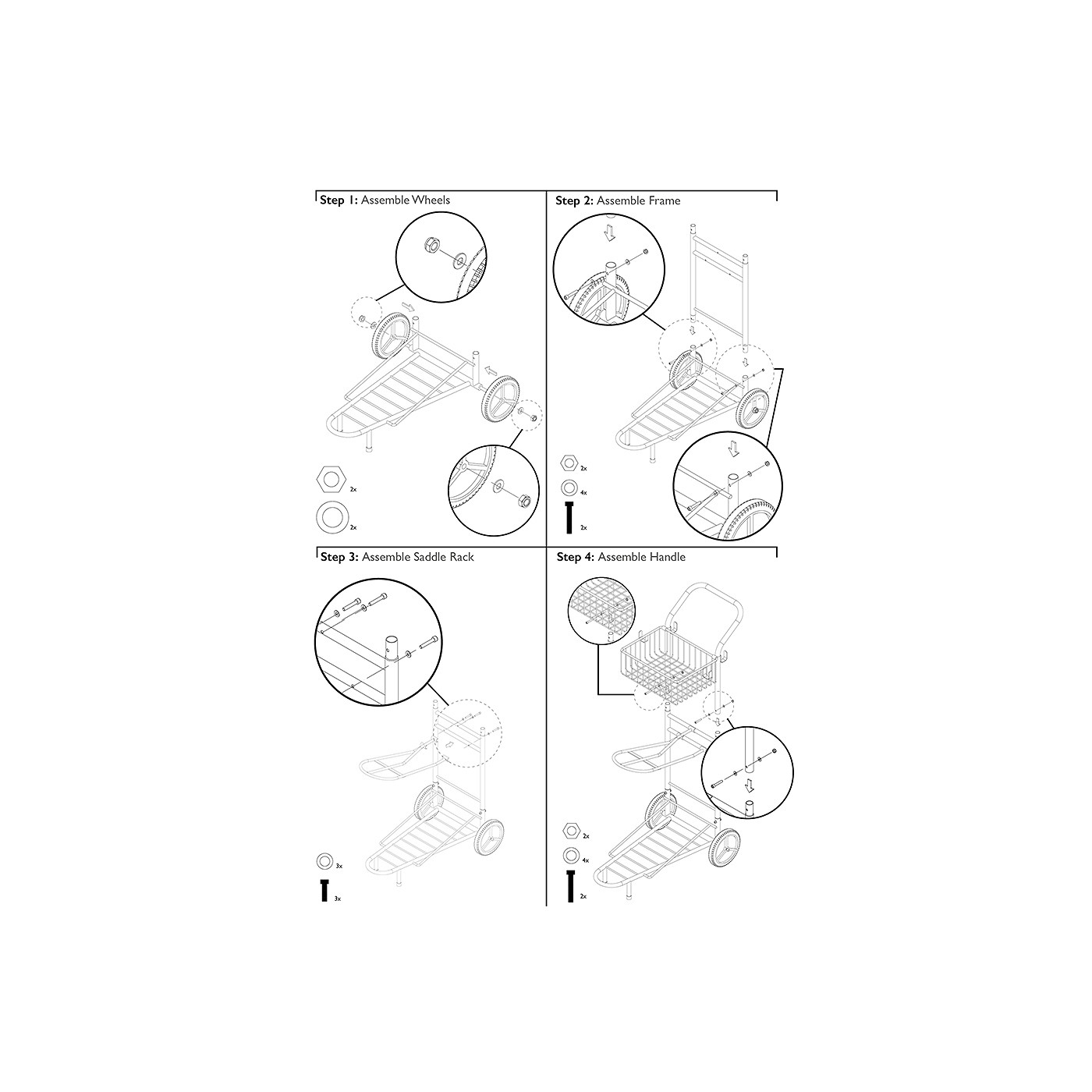 Epoxied tack trolley with wheels. The tack trolley is equipped with a basket and a saddle rack. A grooming box can be placed at the bottom of the trolley. The trolley is ideal for storing and carrying your equestrian sports equipment in.