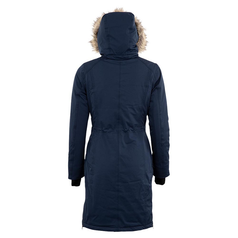 Mantel on valmistatud vastupidavast 4-suunas venivast materjalist, mis on veekindel (5000 mm) ja hingav (5000 g/mยฒ/24 h). Kรตik รตmblused on teibitud. Kapuuts ja kunstkarusnahkne รครคr on eemaldatavad, sisekรผljel lisab pehmust ja soojust kunstkarusnahk kapuutsi ja krae piirkonnas. Ratsutamiseks mรตeldud detailid, nagu kahesuunaline esilukk, tuuletรตkked, tagalรตhikud lukkudega ning elastsed pรถidlaavadega varrukaotsad, muudavad selle mantli รผhtaegu funktsionaalseks ja mugavaks.