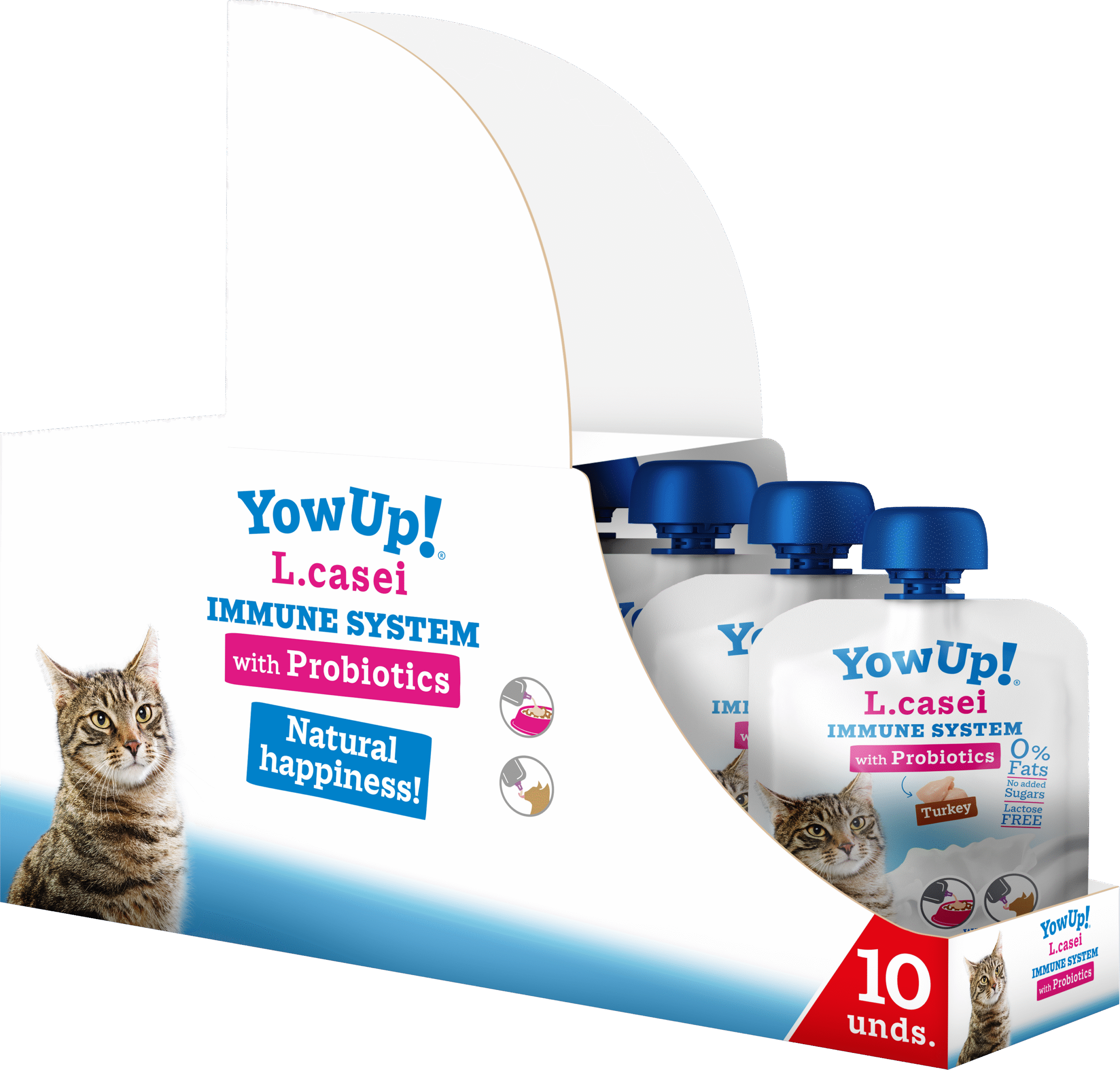 YowUp! L. Casei is the world’s first fermented dairy that does not require cold storage and contains millions of active probiotics that improve cats’ immune and digestive systems. The formula contains no added sugars, is lactose-free and contains 0% fat.