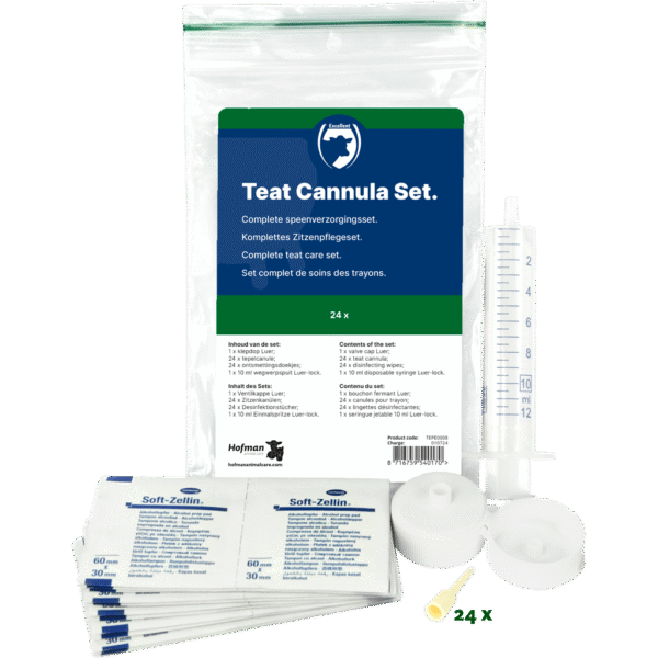 Teat cannula set Content• 1 Valve cap Luer, • 24 x teat cannula,• 24 x disinfecting wipes, • 1 x 10ml disposable syringe