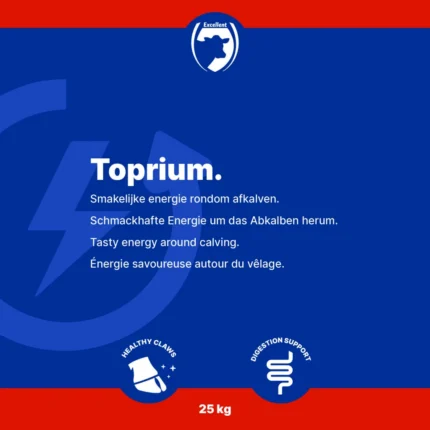 Unique all-in-one product to be used around calving.Toprium is cost reducing, super tasty and contributes to a healthy cow, optimum
