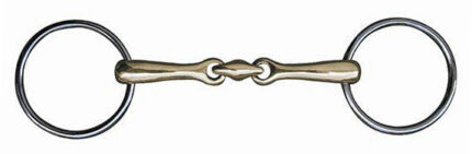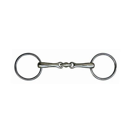 Double jointed, Pessoa 3-rings, solid stainless steel, rings 65 mm. Mouthpiece thickness 18 mm.