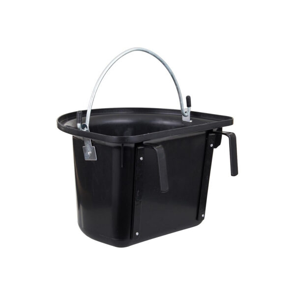 This metal bucket holder is easy to take anywhere with you and can be hung on a stable door. The