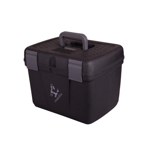 Large grooming box of polypropylene with a seperate tack tray and a hoof oil brush holder. The grooming box is