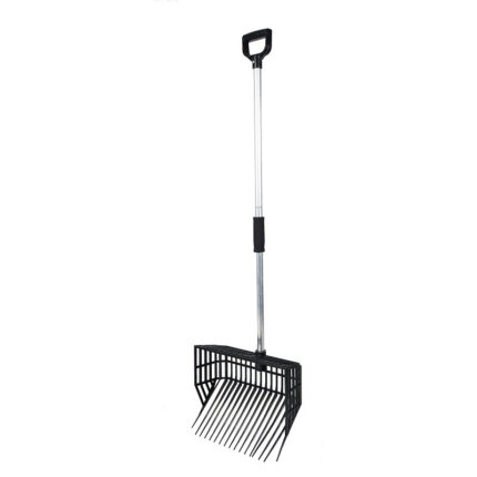 Plastic manure fork with a split aluminum handle and sturdy grip. Lightweight and easy to use. Dimensions: Fork: 31 cm
