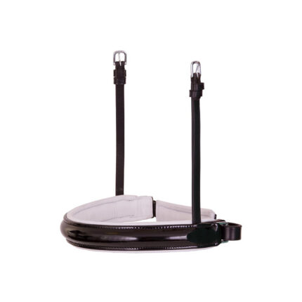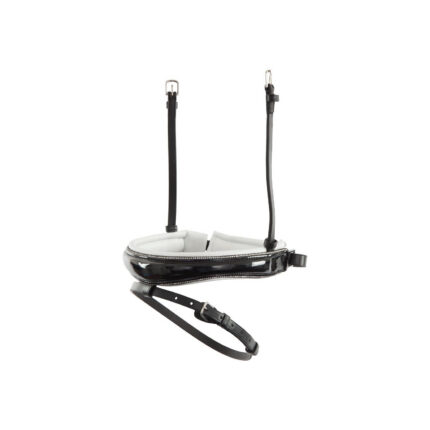 Wide crank noseband (± 4 cm) with patent leather. The noseband has a symmetric design, with soft padded lining, is
