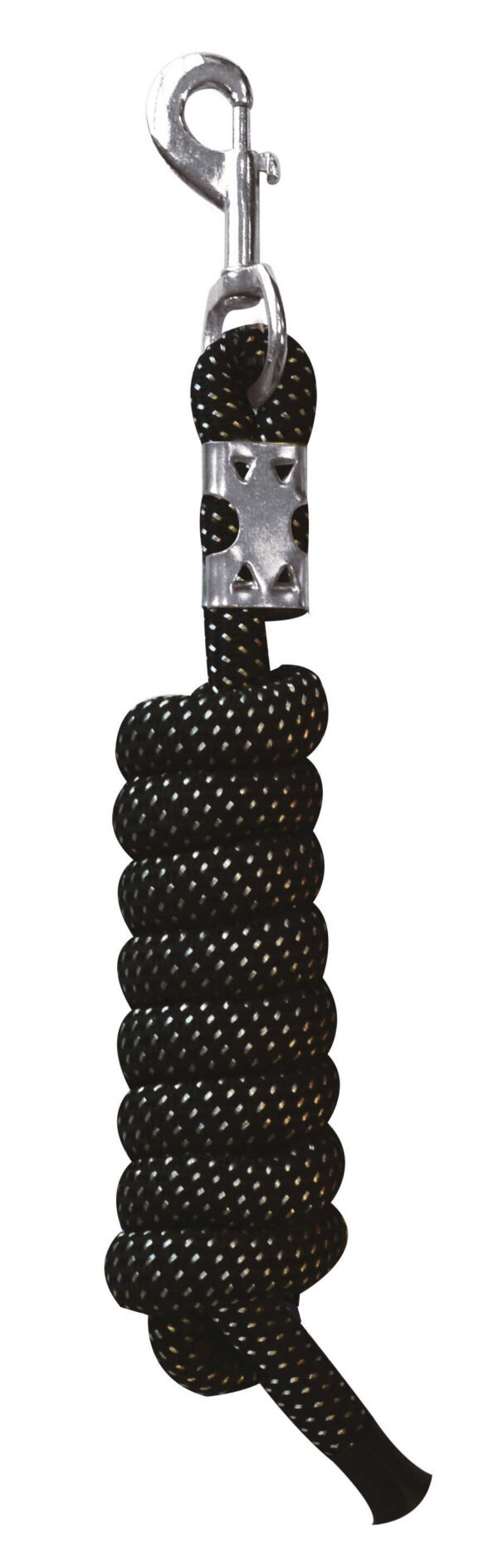 – Braided polypropylene. – Reflective thread. – Chrome-plated metal swivel snap hook. – Measures 2 m. COMPOSITION: Polypropylene. Care instructions: